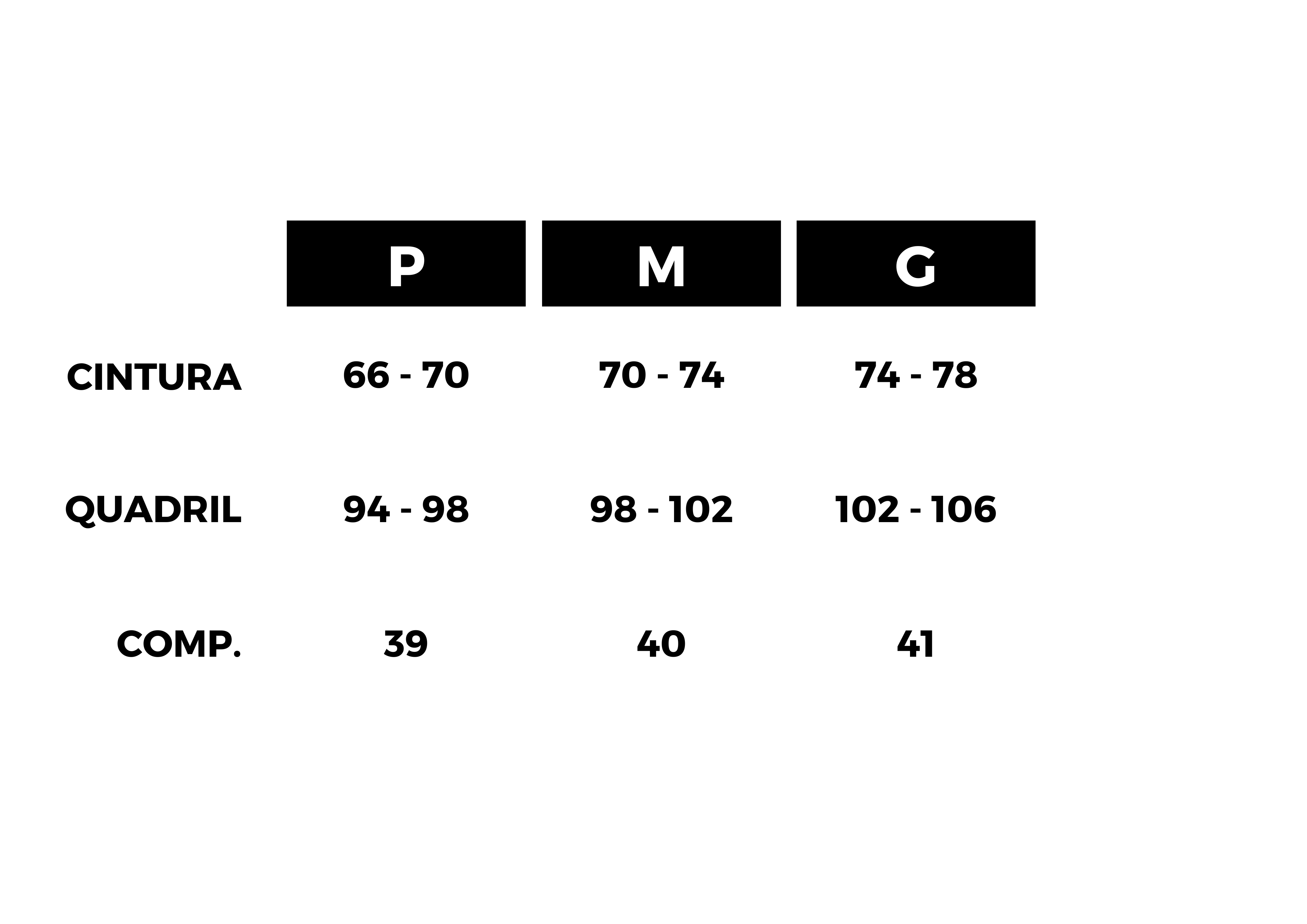 TABELA DE MEDIDAS:
