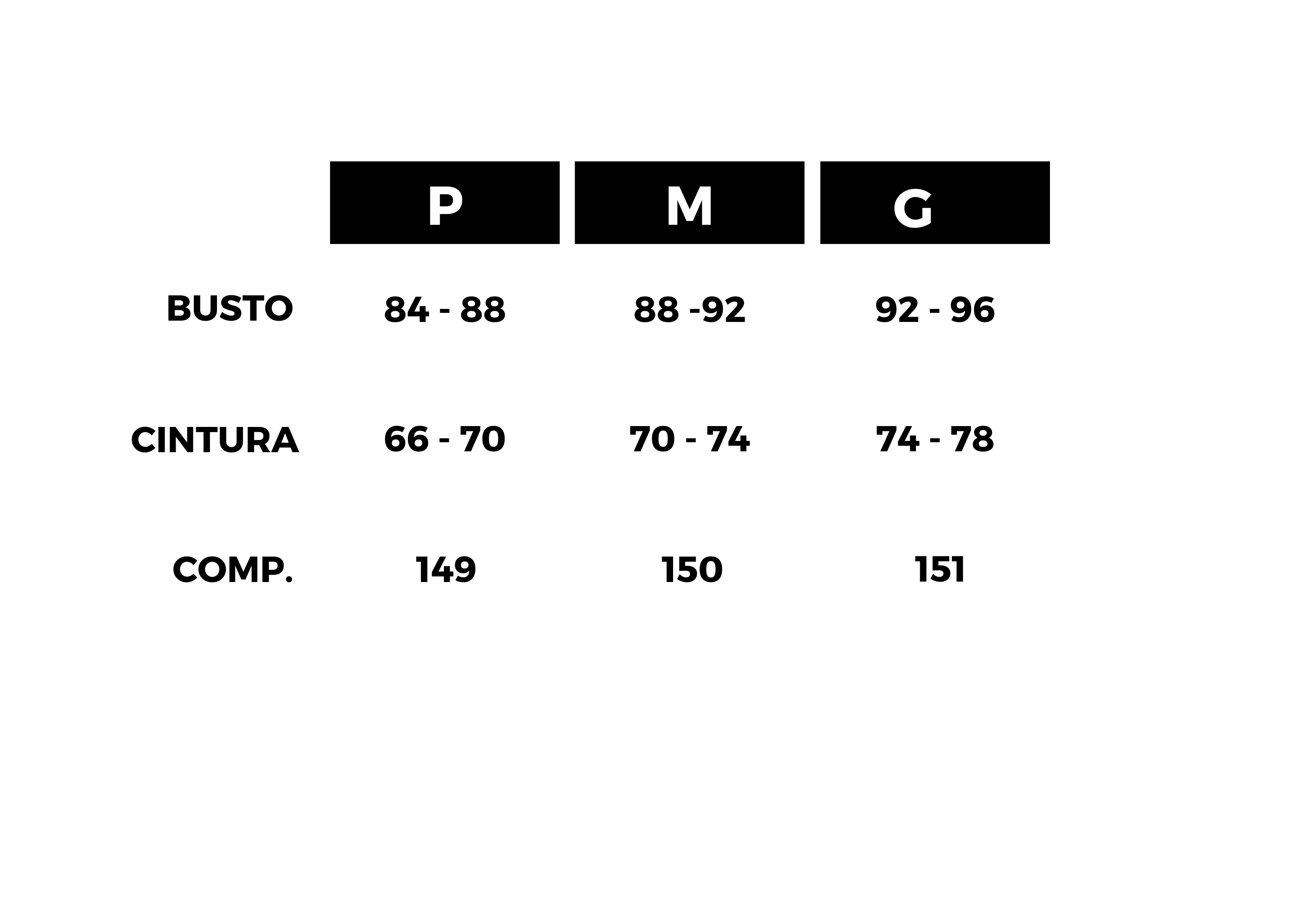• Medidas da modelo: Busto: 84 | Quadril: 94 | Cintura: 67